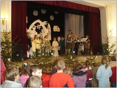 Volné chvíle byly vyplněny kulturním programem: žáci 1. – 4. třídy si připravili živý betlém se zpěvem koled a pískáním na flétny, žáci OÚ zpívali a tancovali, členové barmanského kroužku připravovali míchané nápoje. Předvánoční pohodu si mohli návštěvníci vychutnat nad šálkem kávy nebo čaje.