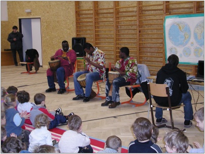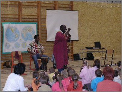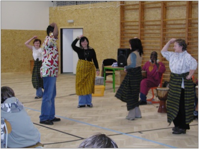 V úvodu se děti velice stručně seznámily s africkým kontinentem, podívaly se na krátký film a potom již bubnovaly na africké bubny, učily se a zpívaly africké písničky a na konec si zatančily africké domorodé tance.