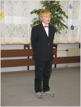 Recitační vystoupení se střídala s hudebními ,které si připravila Základní umělecká škola třídy paní učitelky Ondryášové.Nechyběla ani amatérská pěvecká čísla,která si děti připravily samy.Celým podvečerem diváky zdařile provázely Karolína Fialová a Nikola Jakubcová z 8.třídy.Vystoupení se povedlo a myslíme,že byli všichni, diváci i účinkující, spokojeni.