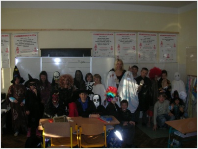 V rámci výuky anglického jazyka jsme si i na naší škole připomněli tenhle svátek a žáci se oblékli do nejrůznějších převleků a masek. Během dne je pak navštěvoval černokněžník, který dětem rozdával sladkou odměnu. Bylo to příjemné zpestření výuky a zároveň seznámení s tímhle novým, u nás rozvíjejícím se svátkem. Všem strašidýlkům děkujeme za účast a nápadité masky a příští rok se těšíme opět na viděnou.