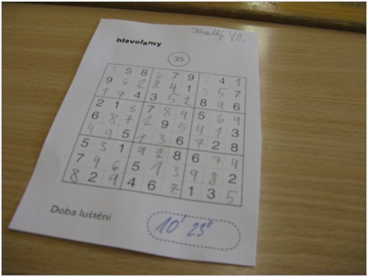 V úterý 7.10.2008 uspořádala paní učitelka Hlavinková (učitelka matematiky) pro všechny lámání hlavy milovné žáky 2.stupně školní soutěž v luštění sudoku.
