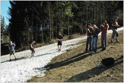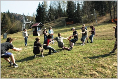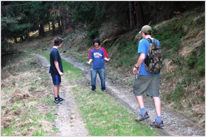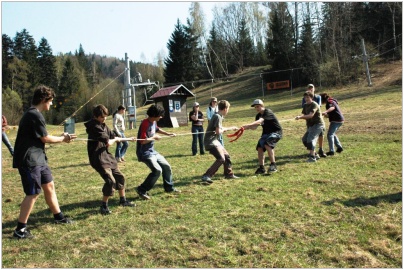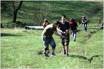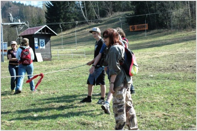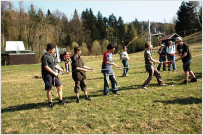 Naše poslední cvičení v přírodě začalo jako obvykle. Když jsme se 16. dubna 2009 ve 14 hodin sešli u stromu, okamžitě jsme vyrazili k obrázku. Kousek odsud (od obrázku) jsme pak házeli šiškami a získávali jsme trestné body. U potoka jsme potom podle počtu trestných bodů nosili vodu a hrozně jsme se u toho nasmáli !! Pak jsme zkoušeli přenos raněného a o kousek dál nás holky kluci zkoulovali. U jezírka jsme si zahráli přetahovanou a byl konec. U stromu byl opět rozchod. Ze cvičení v přírodě jsme si všichni určitě odnesli krásné vzpomínky.