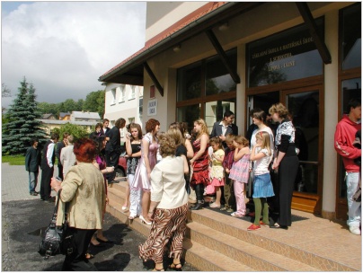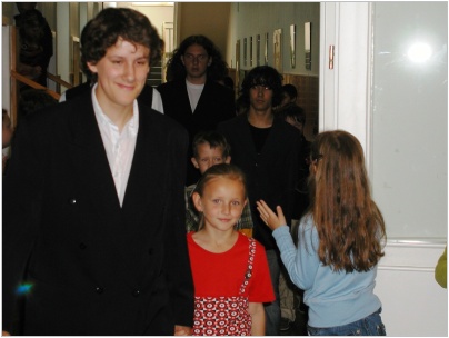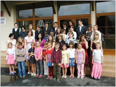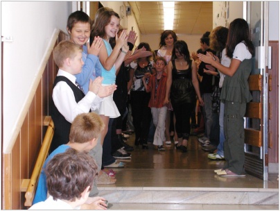 bylo opravdu posledním pro deváťáky, které v budově ZŠ slyšeli ve čtvrtek 26. června. Tak jak na začátku školního roku doprovázeli oni poprvé do třídy prvňáčky, tak prvňáčci je vyprovázeli špalírem ostatních žáků z jejich třídy. Někteří odcházeli se slzami v očích, někteří s vážnou tváří a někteří s optimistickým úsměvem do budoucnosti na rtech. Tak tedy šťastnou cestu!