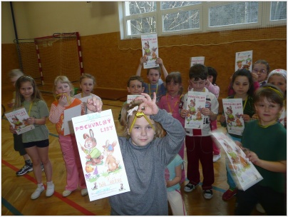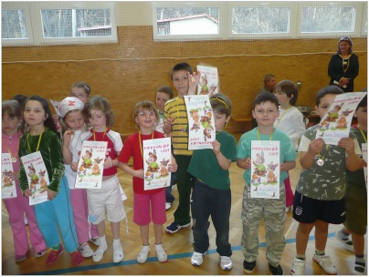24 předškoláků se se svými rodiči sešlo poslední březnové úterý v tělocvičně. Děti hrály různé hry pod vedením p. uč. Šustrové a pomocnic Martiny a Moniky z 9. třídy. Všichni si vysloužili čokoládovou medaili a pochvalný list za první jarní cvičení.