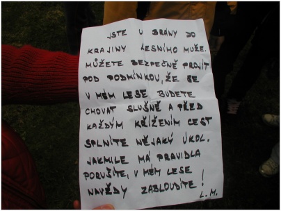 Nechyběl ani pokus strážce lesa zmást své hosty, s nímž se žáci vypořádali s chladnou hlavou a pomocí turistického značení nezabloudili a zdárně došli až k bráně znamenající východ z krajiny Lesního muže, nad Bobrovníkem.