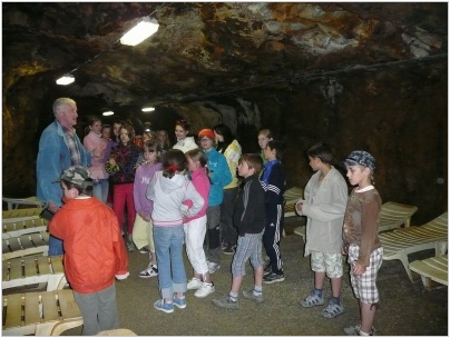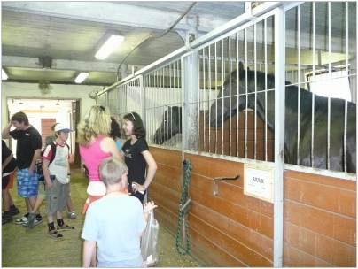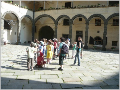 9. 6. 2010 v 7.45 hod nastoupilo 43 vybraných žáků do autobusu a vydalo se na cestu za poznáním. Celou cestu nás všechny celý den provázelo slunečné počasí. První zastávkou byl zámek v Bruntále. Z přednesu mladé, nezkušené průvodkyně si každý odnesl jen ty nejzákladnější informace, její výklad aspoň obohatila Jana H. o hru na starodávný klavír. Většina nezapomněla na nezbytné nákupy pohlednic a jiných drobností. Po svačině nás p. Dombek zavezl do Hamříkovy stáje podívat se na koně. Byl na ně nádherný pohled, když se řítili z kopce do stájí. Teplokrevníky jsme si uvnitř prohlédli zblízka, někteří si je i tajně pohladili a nakonec jsme vedoucímu předali hromádku mrkviček nebo suchého chleba. Krmit jsme je však nesměli. Pak jsme nasedli zase do autobusu a jeli do Karlovy Studánky. Je celá rozkopaná, museli jsme dávat pozor, kam šlapeme. Prošli jsme se parkem a nakoupili další dárky. Nejvíce jsme se zdrželi u vodopádů. Někteří vlezli do studené vody a řádili, někteří jen tak posedávali ve stínu pod stromy. A vydali jsme se na cestu zpátky. Protože jsme ušetřili nějaký čas, zastavili jsme se na náměstí ve Zlatých Horách. Jedna skupina šla do místního muzea obdivovat zlato, kameny a další exponáty, ostatní ještě utráceli poslední peníze v místních obchodech. Závěr našeho zájezdu patřil prohlídce podzemních štol, které nyní využívá Léčebna EDEL ke speleoterapii dětí hlavně s poruchami dýchání. Navlékli jsme si teplé oblečení a vyrazili na 800 m dlouhou sporadicky osvětlenou trasu. Uvnitř byla velká zima, jen asi 7ºC, ale příjemně se tam dýchalo. Překvapilo nás volejbalové hřiště, pingpongové stoly nebo šlapadla. Lehátka nebo stolky se židlemi jsou tam samozřejmostí. Venku na nás pak dýchla teplota 33ºC. Domů jsme se vrátili kolem půl šesté navečer. Autobus většinu rozvezl až domů, pro některé přijeli rodiče s auty.